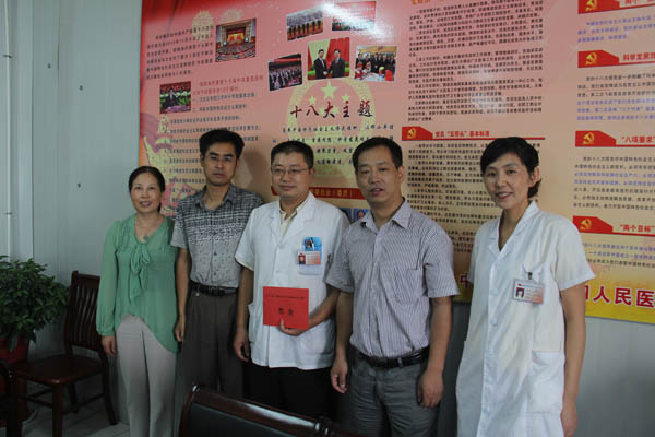9月10上午,受海陵區(qū)委、區(qū)政府委托,海陵區(qū)人社局副局長陳海東等一行,前來四院,看望并慰問了2012年度海陵區(qū)“有突出貢獻的中青年專家”仲衛(wèi)東醫(yī)生,發(fā)放了相關(guān)獎金,并詢問他了近期的生活、學(xué)習(xí)、工作狀況,征詢他有沒有相關(guān)的要求和建議。