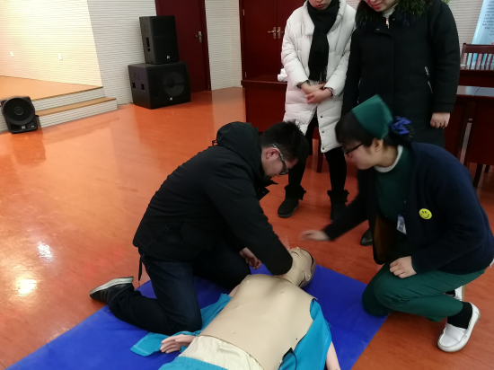 理論講授結(jié)束后,專業(yè)護(hù)士進(jìn)行了心肺復(fù)蘇的現(xiàn)場(chǎng)示范。